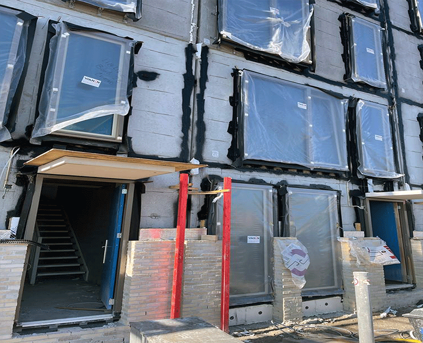 Various air barrier solutions are applied using Liquid Rubber HBS200. For example, all window frames are applied with a layer Liquid Rubber HBS200 to create an air barrier. The gaps between the concrete elements are also provided with a layer Liquid Rubber. A flexible back filling is placed in the recess. After the back filling has been cut flat, the gaps are sprayed airless with Liquid Rubber.
