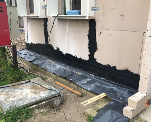 Description: In order to ensure that no groundwater leaks into the facade, it is advised to seal the ground level detail with Liquid Rubber. Liquid Rubber realizes a watertight membrane that stops the water from penetrating into the facade.