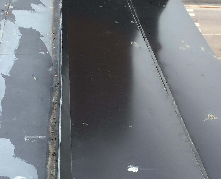 In this project, the existing steel roof was leaking on several spots. After cleaning the entire roof, Liquid Rubber was sprayed on in a 2mm thickness.