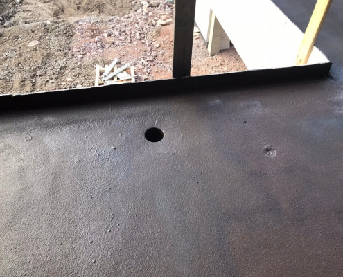 At this new construction, waterproofing is an import matter because there is a garage built underneath. The entire balcony, that is fully concrete, is sealed with a 2mm thick layer of Liquid Rubber BelowGrade. All the connections to the facade and up-stands are directly covered by this system. Because the Liquid Rubber products are liquid applied, it cures into a fully seamless and flexible membrane.